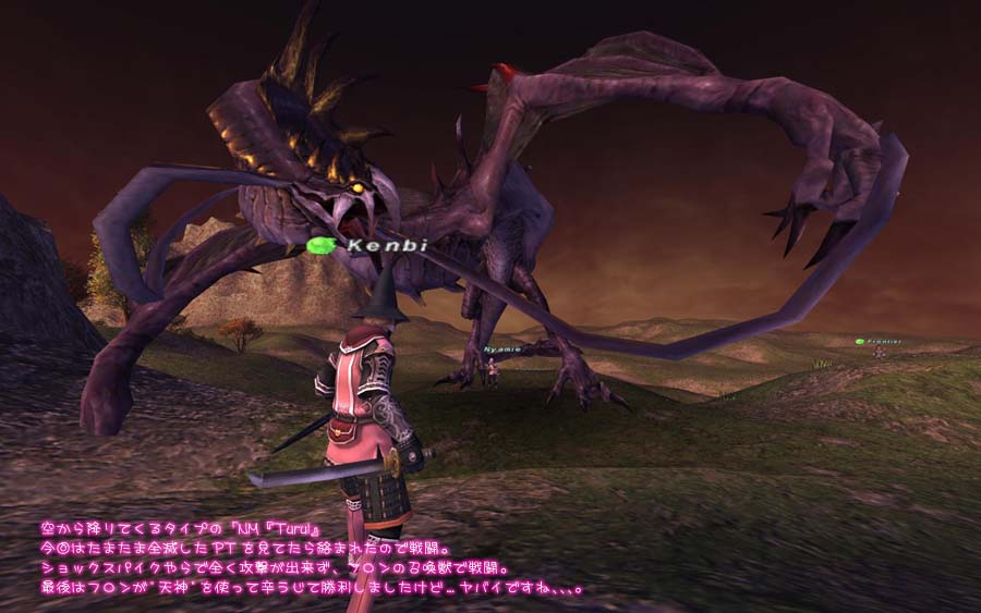 次のNMに移動しようかと思ってましたら....「Turul」と戦ってたPTが全滅、、、。