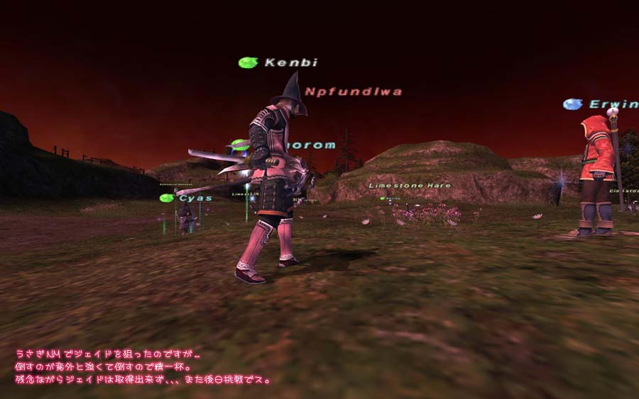 帰りにジェイドを落とすウサギNMを退治しましたけど赤色がつけれず…。