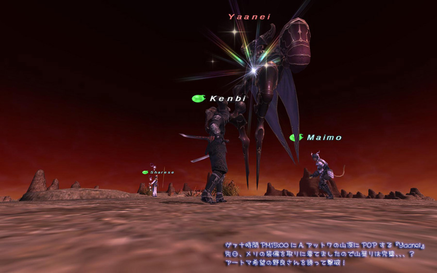 この一族はヴァナ1日に1回のPOPなので時間に寄っては待ち時間が非常に長いんですよネ。