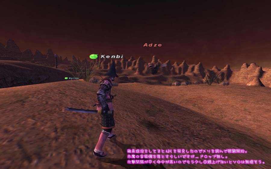 広域スキャンしてるとハエ(?)のNM「Adze」が居ましたのでメリを呼んで戦闘開始。