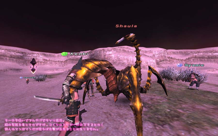メンバーが揃うのを待ってるとニャミ太から「サソリNM倒すの手伝って」っとか。