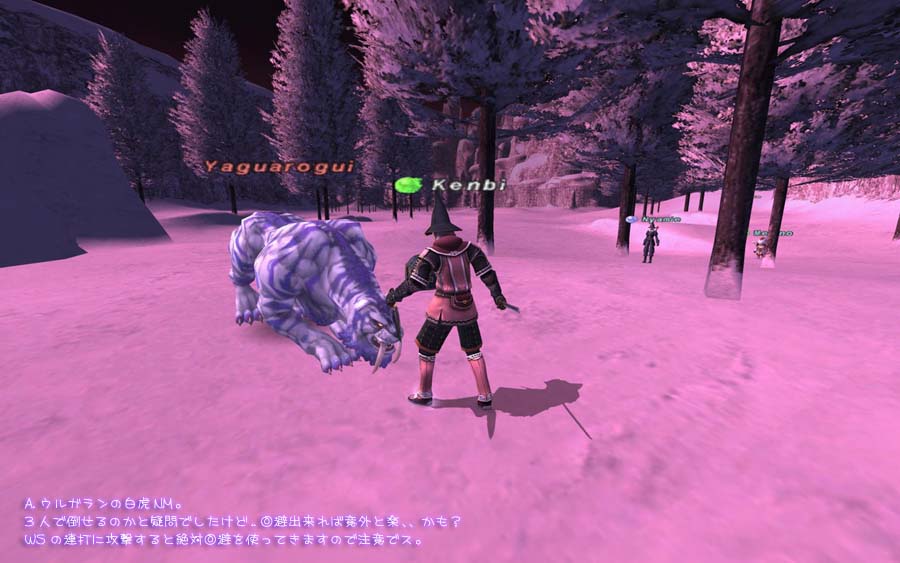 トリガー「上質な黒虎の毛皮」を入手したところでニャミ太が来ましたので虎NM退治。