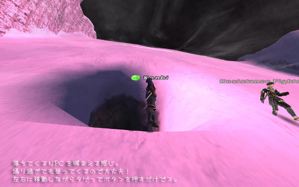 穴に入れればミニゲームはとっても簡単。落ちてきたNPCをタゲって案内するだけ。