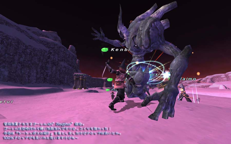競合さんが居る中、ゴーレムNMを釣り勝てまして戦闘開始。ゴーレムは苦手でス。