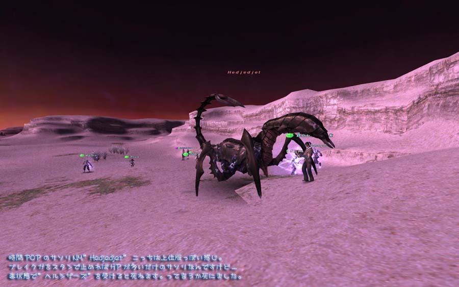 ジュノで連戦シャウトが在りましたサソリNM”Hedjedjet ”を最初に狙いまス。