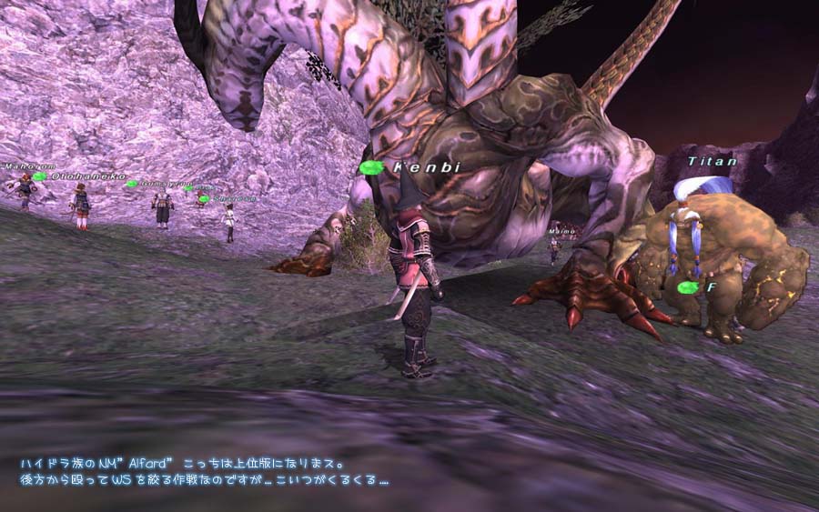 広場手前の坂まで戻りまして立ち位置を決めてからNMを引っ張り戦闘開始。