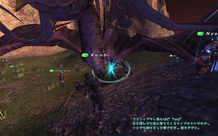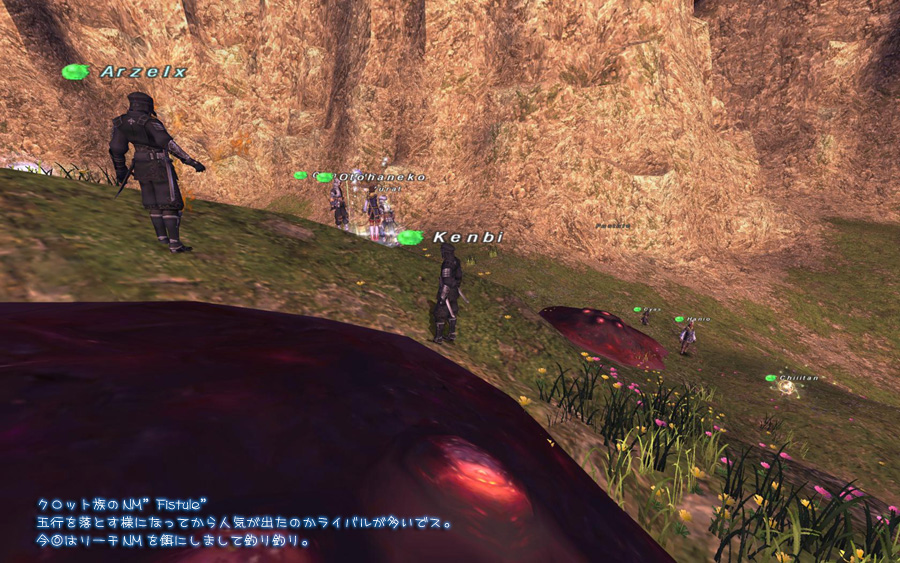 ”Fistule(クロット族)”のPOP待ちの間にニャミ太、アルさん、チーたん、ゆらっちは別のNM退治。