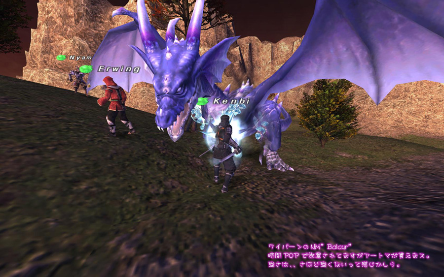 モルモルのトリガーが揃った所で⑦に移動しまして時間POPのワイバーンNM退治。