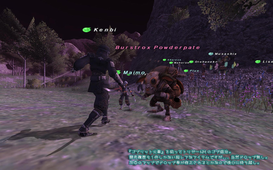 『Bomblix Flamefinger』を倒すのですが「ゴブリット火薬」の取得は別のNMでかなり渋いとか。