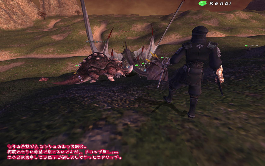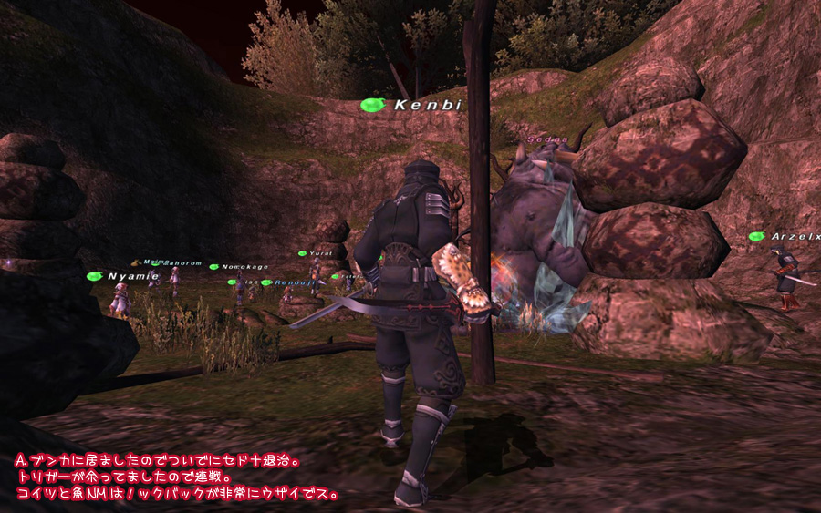 ムーさんの希望で有色ジェイドのNM退治。アートマ希望って事で赤色をつけて倒しまス。