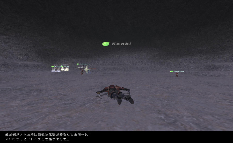 隙を見てメリにレイズを貰いまして衰弱回復待ち。端っこの壁にくっついて観戦。
