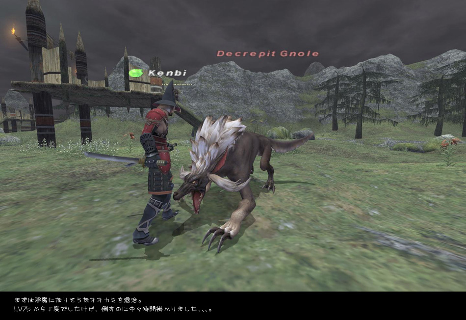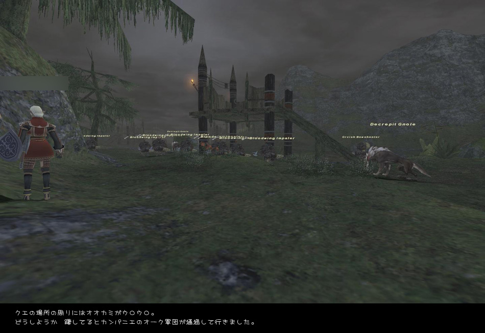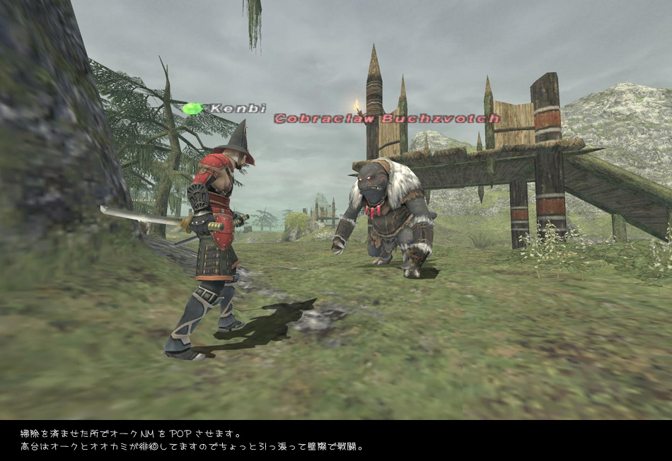 イベントを見て帰ろうかと思いましたら侍/踊さんが高台のオークに絡まれピンチ。