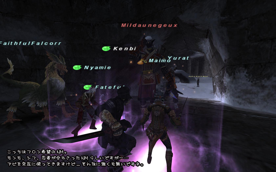 ニャミ太に誘われ裏氷河に行く事に。NM退治とか何とか。