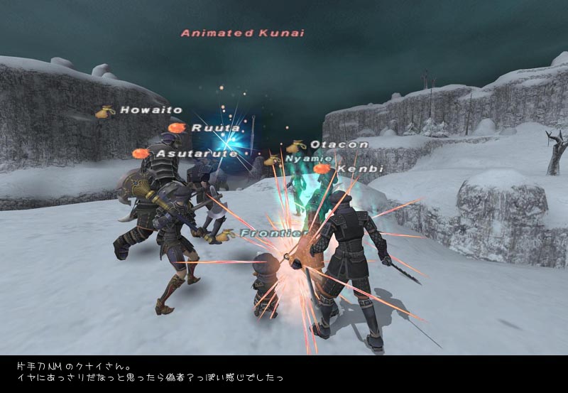 時間切れ直前に片手刀のNM退治。何度か武器NMと戦った事は在りますが妙に弱くセリフもなし。