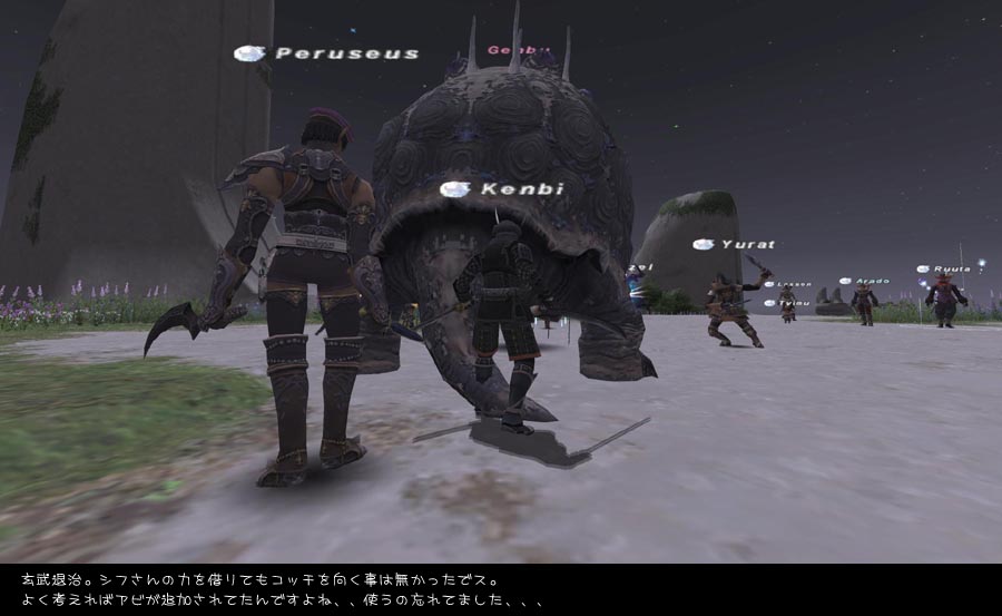空へ到着しますとニャミ太からPTに誘われましてロボNM退治。