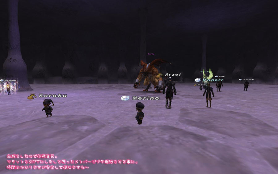 ニャミ太が必死にマラソンしてくれましたけど、プチ白虎も湧きまして建て直しは不可。