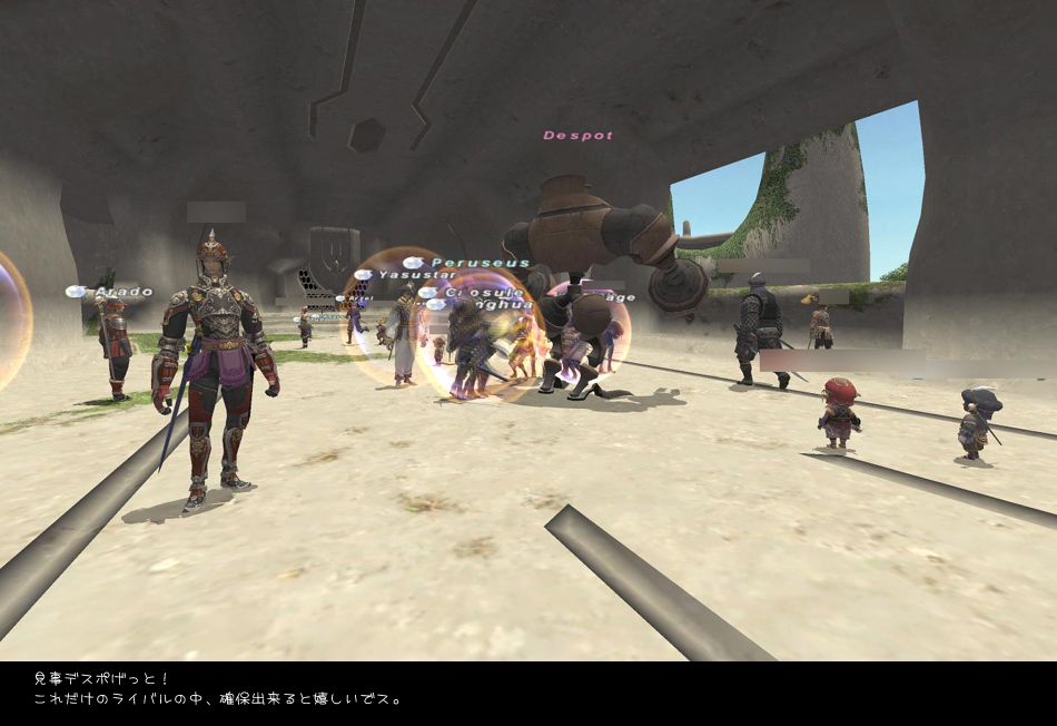 宮殿前までひっぱりまして雑魚を消し、他団体が見守る中、無事デスポ撃破っ