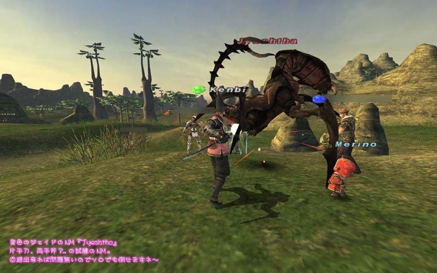 夜から神無を進める為に変色ジェイドのNM退治に行く事に。