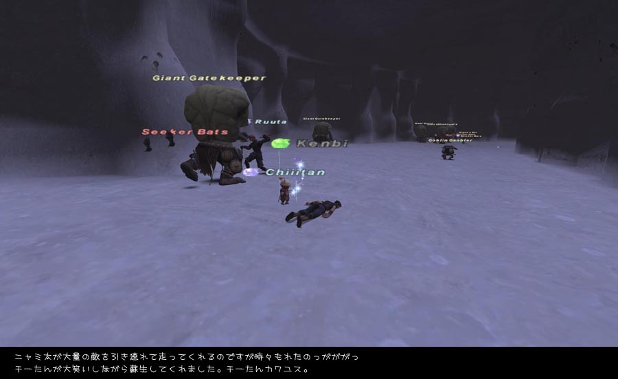 とりあえず突撃しましてゴブ、コウモリに絡まれ死亡。ルタも合流しまして賑やかに。