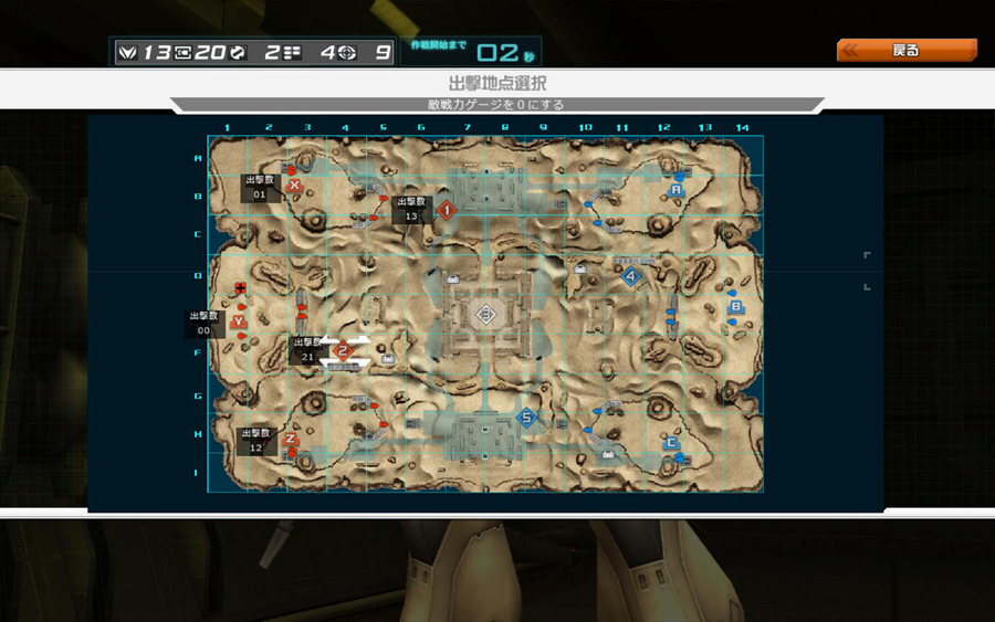 出撃場所を選びましてモビルスーツを選んで出撃。
