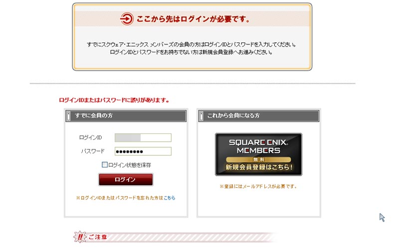 何で?っと思ってましたけど、、良く見るとココは「スクエニメンバー」の入り口だと気づきました。