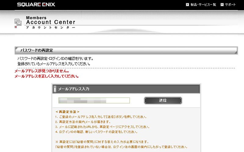 スクエニメンバーには登録してないのではじかれるのは当然のこと。登録してないですから当然メルアドも、、