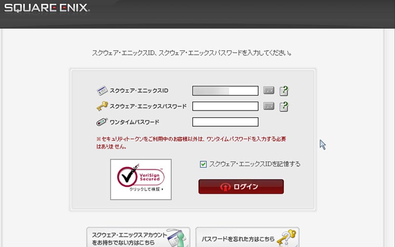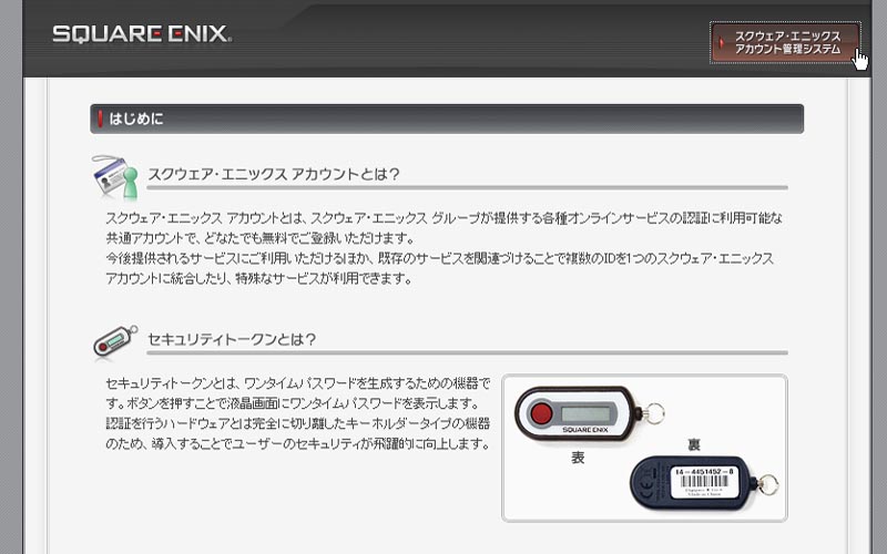 ふと、「スクエニ アカウント管理」でぐぐったらこのページに到着っっっ 上の右端にしっかり入口が!!