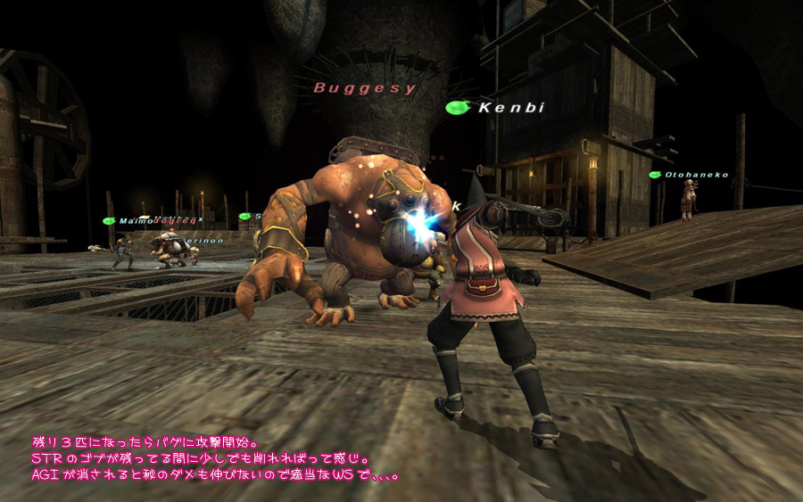 最後の3匹になったらバグを削り始めると半分ほど減らした所で皆と合流出来まス。