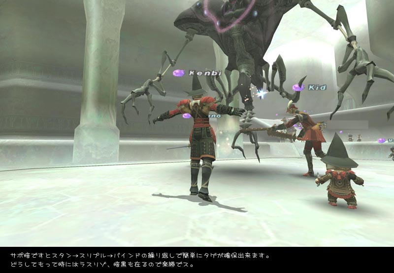 何時も通りスタンから始まりスリプル→バインド→ラスリゾ→暗黒でヘイトを稼ぎます。