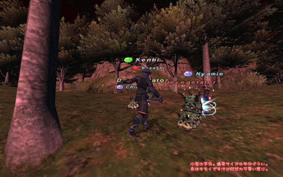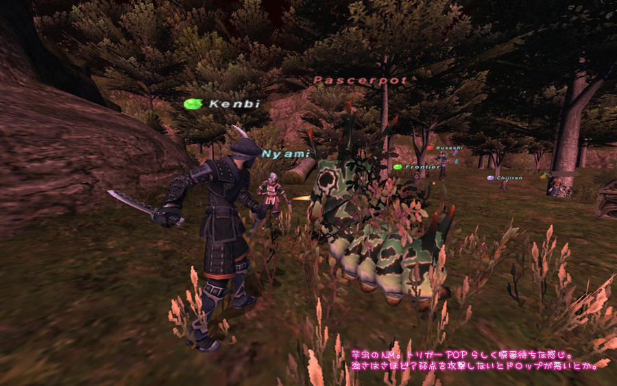 雑魚芋虫を倒して経験やらアイテム取りをしつつNMを倒す感じでやるっぽいでス。