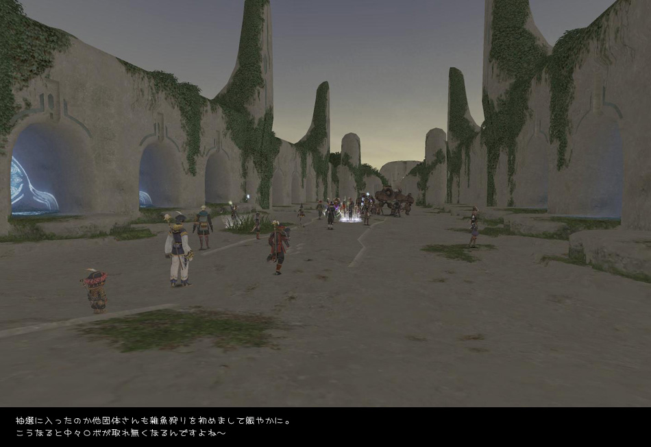 神殿前でやってたのですがコミコミになりましたので通路中央へと移動しましてロボ退治。