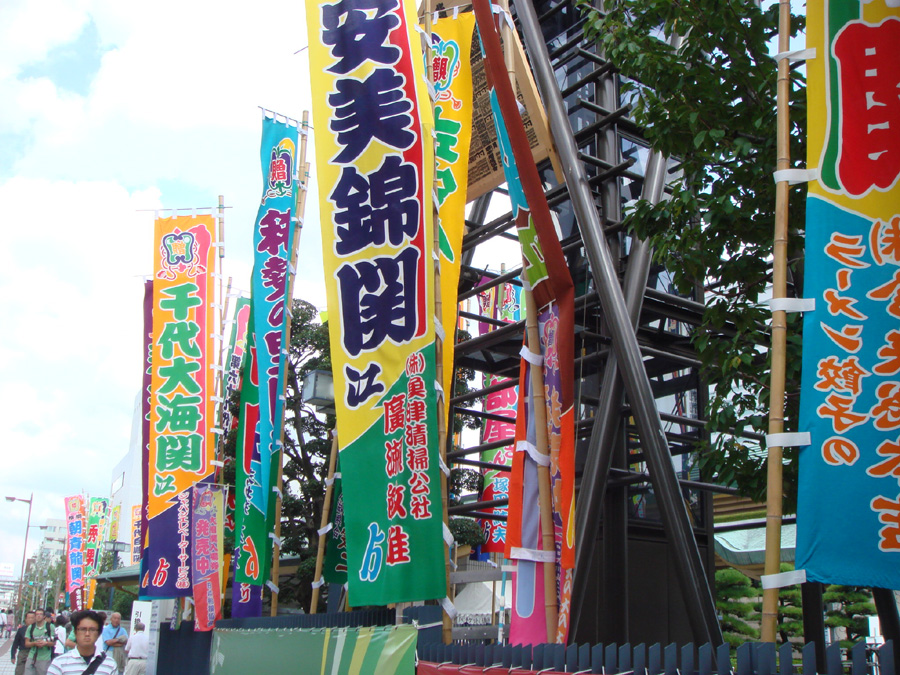 そんな感じで国技館へ到着。のぼりが沢山あり盛り上がってました。