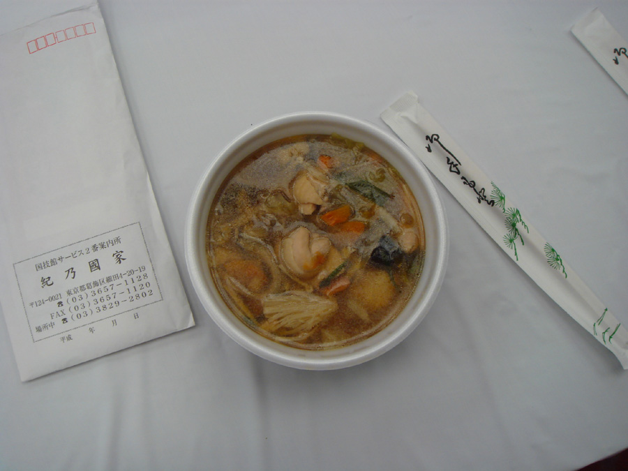 1杯250円。この日は醤油味で具沢山で中々美味しかったでス。