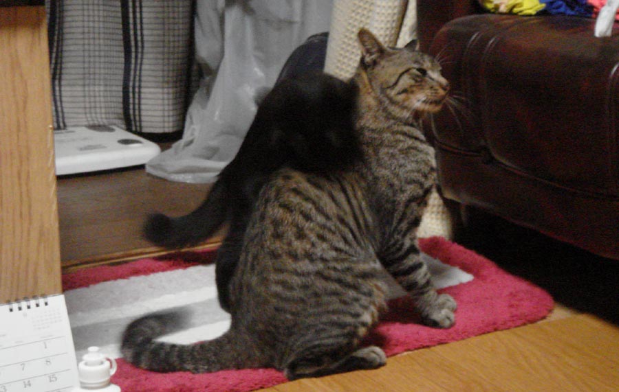 帰宅してから義母に「全くあんたたちは...」っと言いつつもネコ好きなのでニコニコ。