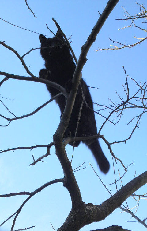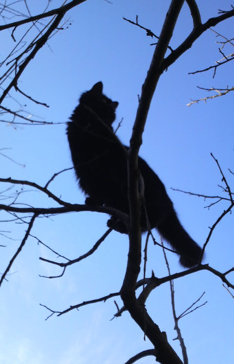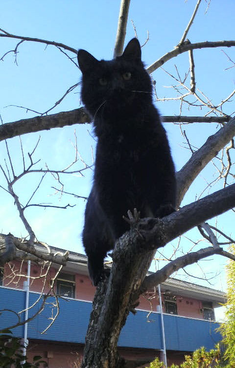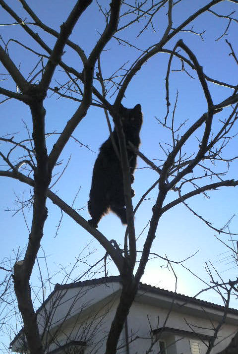 アウトレットに出発する前に庭でタバコを吸ってると猫が木に登ってました。