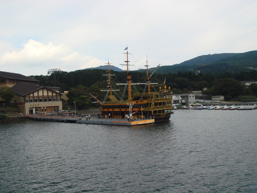 【同居人が撮影した遊覧船と鳥居。鳥居の後ろに富士山が見える筈何ですけどね...残念。】