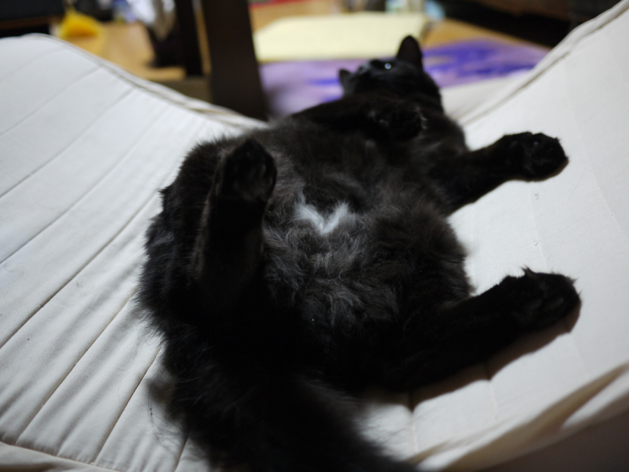 気まぐれな黒ネコの体重を久しぶりに測ったら5.7㌔になってました。