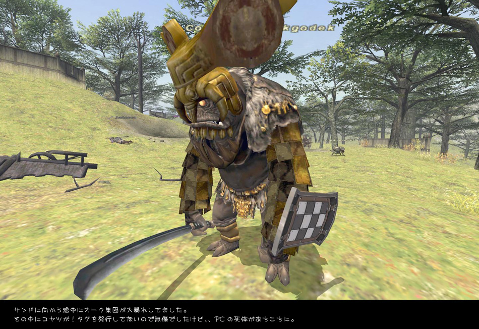 オーク集団に追い掛け回されるPCやらあちこちに死体が....。