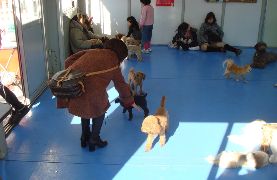 ココは色々な犬とふれ合える場所で仕切られた場所の中には犬がわんさか。