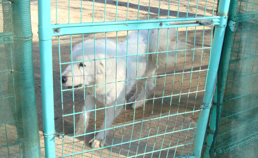 部屋とは別に柵に囲まれた場所でワンワン吠えてる白い犬を発見!