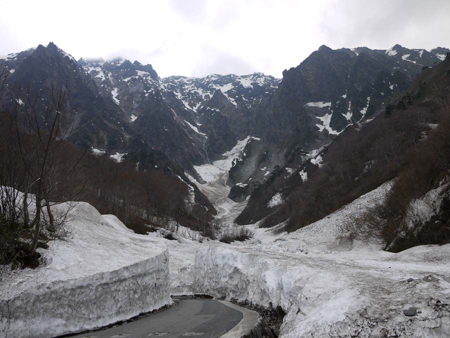 本来は車で行けるのですが、雪崩、落石の影響で通行止めになってまして徒歩しか無理。