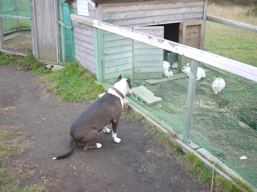 「ウサギ小屋の見張り番っぽい白黒イヌ。怖くて触れなかった...。」