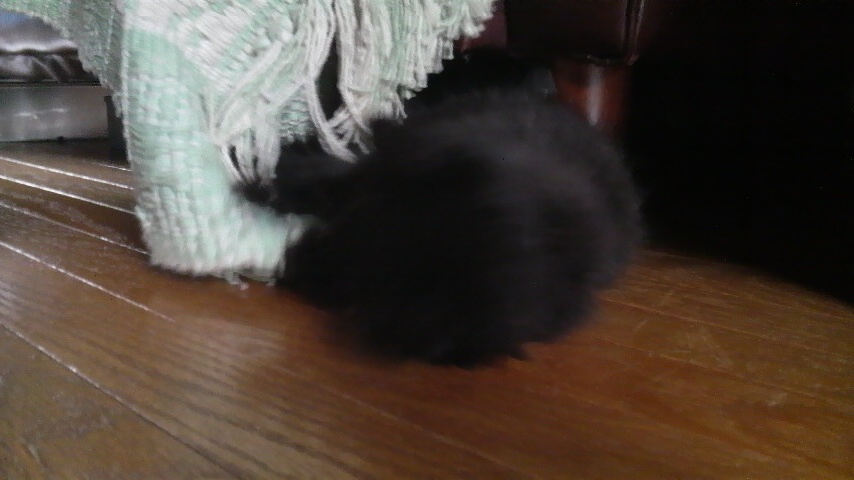 子猫を捕まえて良く見ますと、、コレは毛が伸びるタイプと予想。