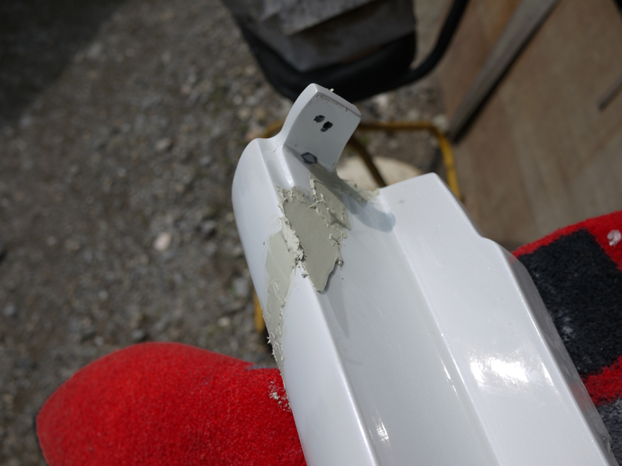 【 傷が隠れるぐらいにパテ盛り。範囲が広いと大変でス。 】