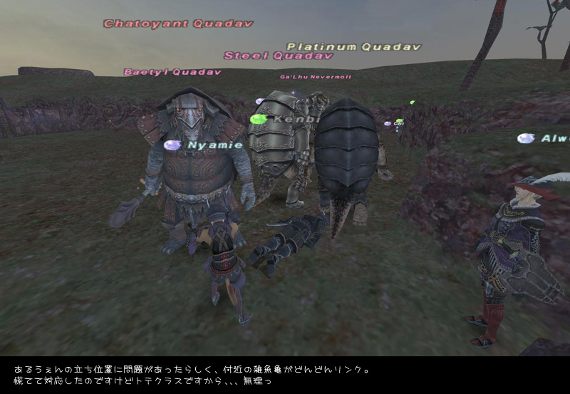 パク夫が亀NMをキープしてくれてルタとニャミ太で雑魚を処理。メリとチーはアチコチ走りまくり。