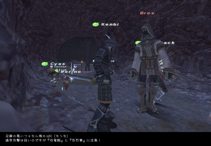 道沿いに進みまして洞窟を抜けた先の扉付近を拠点にしまして、洞窟の中からNMを引っ張ります。