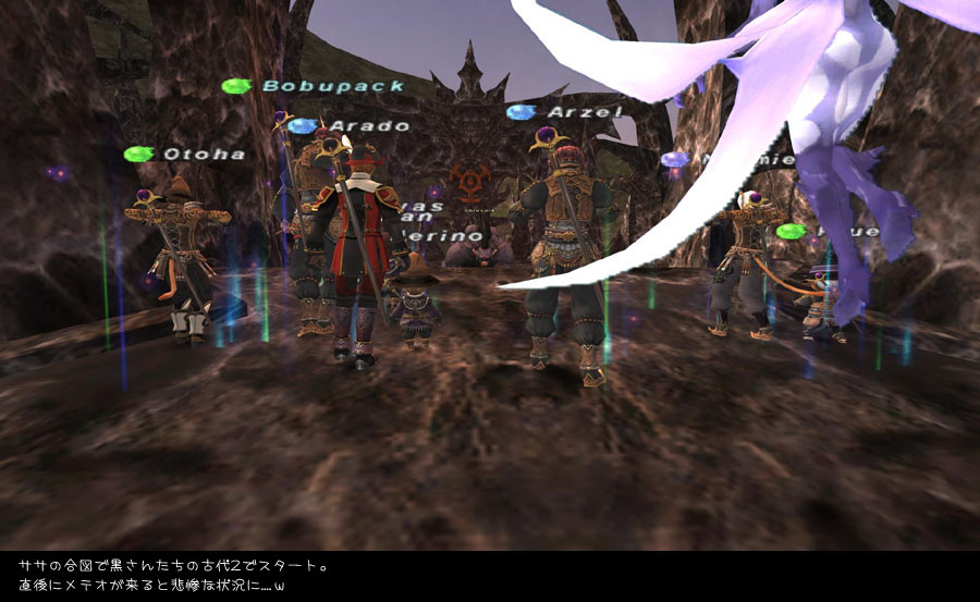 ササの合図で古代Ⅱを詠唱して戦闘開始。タゲを取った方中心にメテオがーーー!!