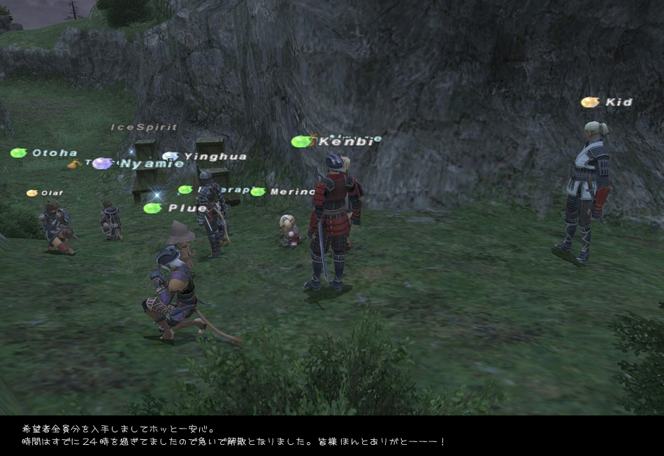 黒さんに送って頂きましてログアウトしました。大勢の方にお手伝い頂き本当に感謝です。