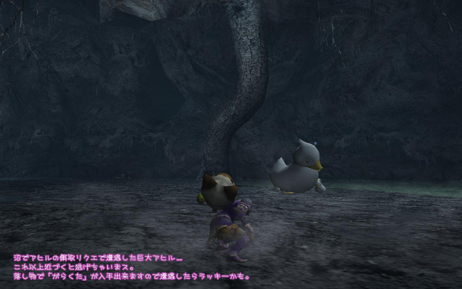アヒルの餌クエで遭遇したデカアヒル。寝てますけど近づくと起きて逃げまス。