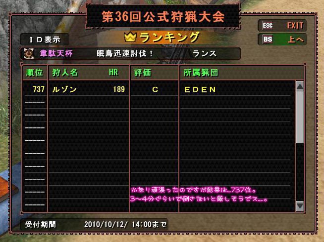 武器ごとに順位が在るので始めて得意のランスで挑戦して見ました。